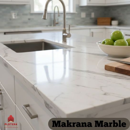 Makrana marble is one of the most trusted options for kitchen marble slabs. It is known for low porosity and high durability.